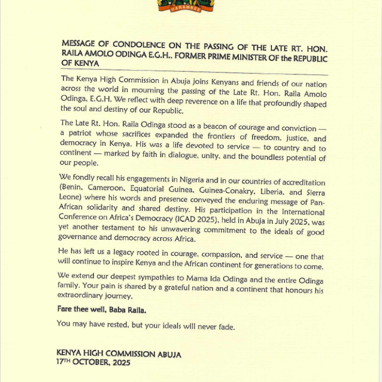 The Embassy of the Republic of Kenya in The Hague joins fellow Kenyans and friends of Kenya around the world in mourning the passing of Rt. Hon. Raila Amolo Odinga,…